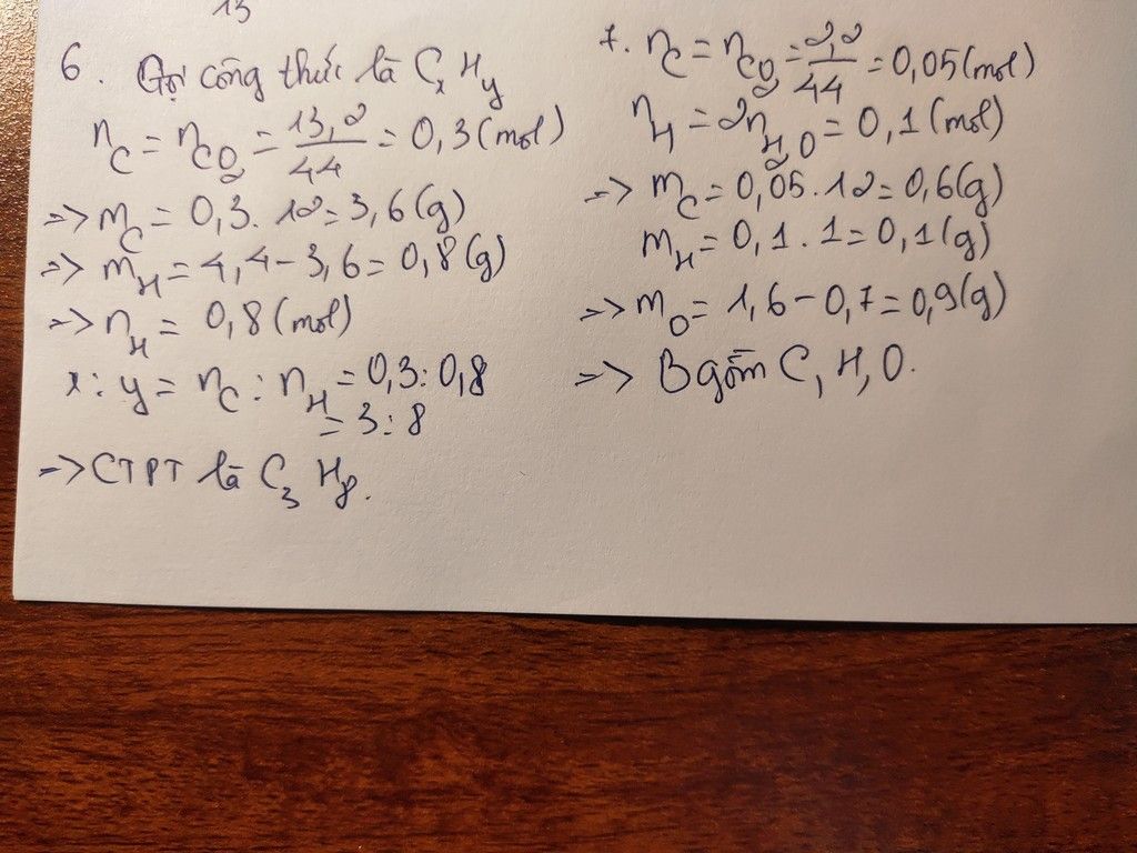 $6)\ C_3H_8;\ 7)\ \text{B chứa C, H, O}$