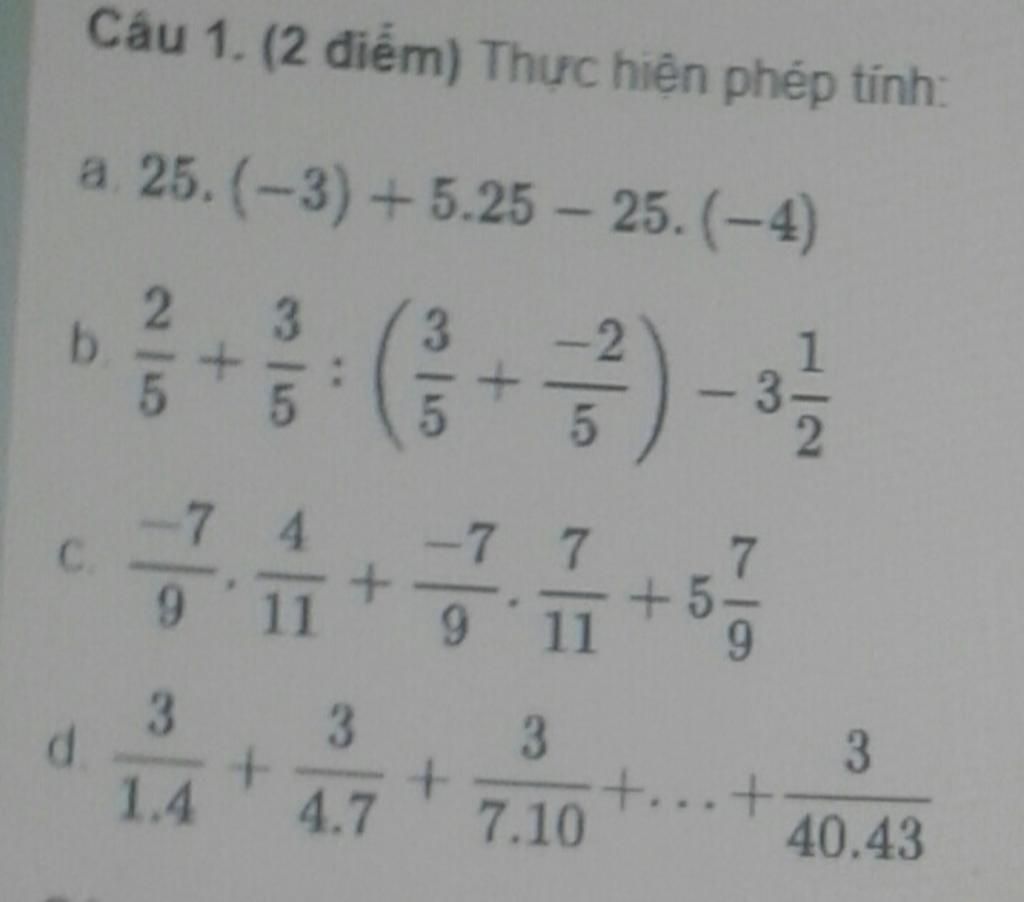 a) `25 . ( - 3) + 5. 25 - 25 . ( - 4)`