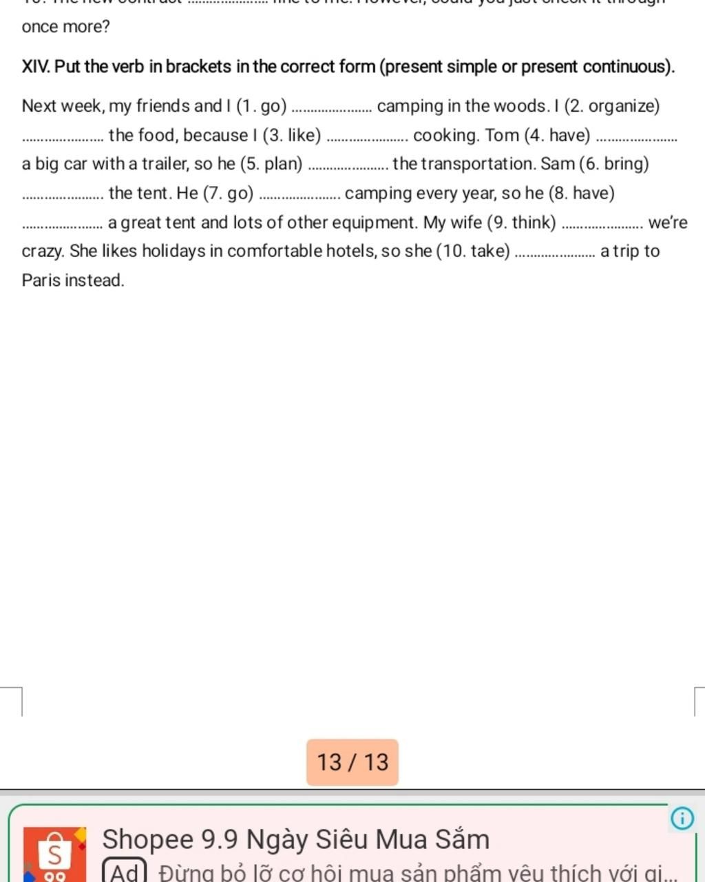 `10.` is taking ( Ý nghĩa của câu diễn tả 1 hành động sẽ xảy ra )