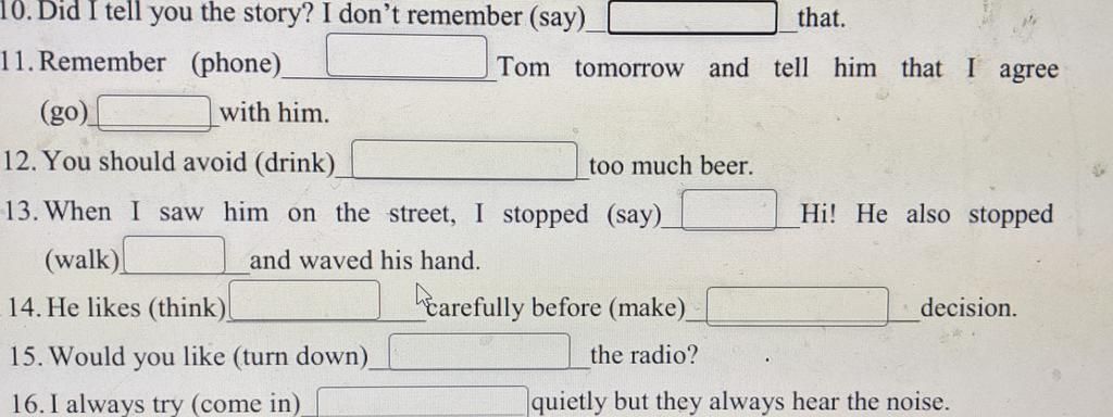 11. to phone - to go (agree + to-V: đồng ý làm gì)