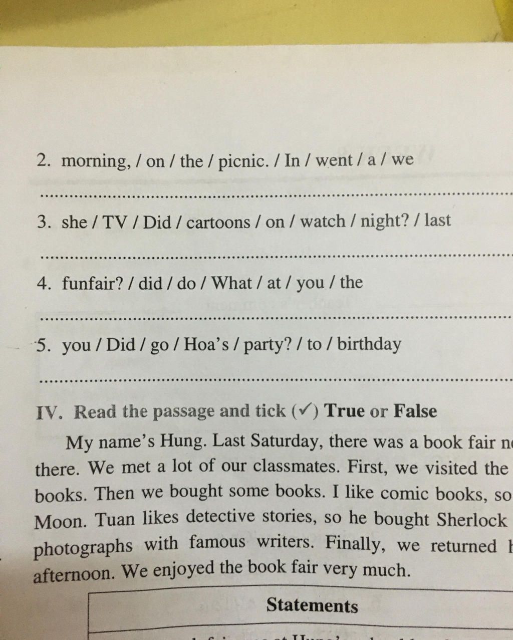 5. Did you go to Hoa's birthday party ?