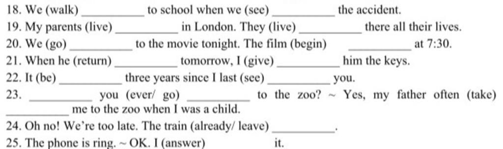 → HTD - sự thật - S số nhiều - V nguyên / HTHTTD : S số nhiều - have - been - VIng