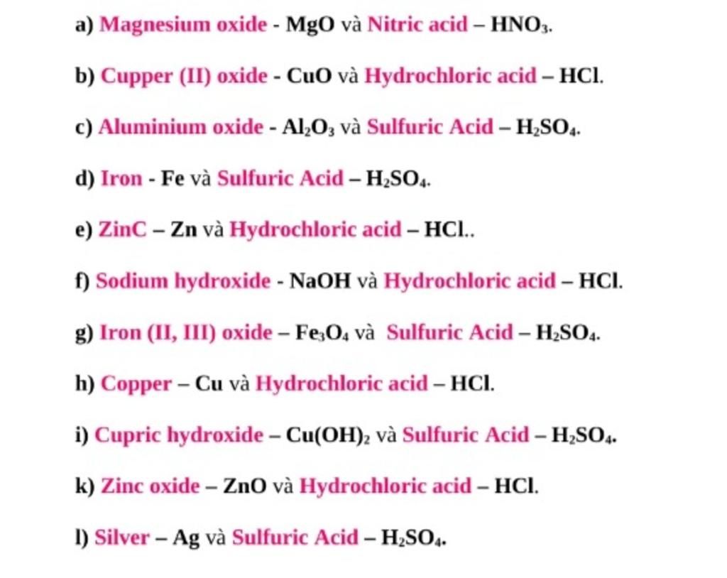 g)\,F{e_3}{O_4} + 4{H_2}S{O_4} \to F{e_2}{(S{O_4})_3} + FeS{O_4} + 4{H_2}O\\