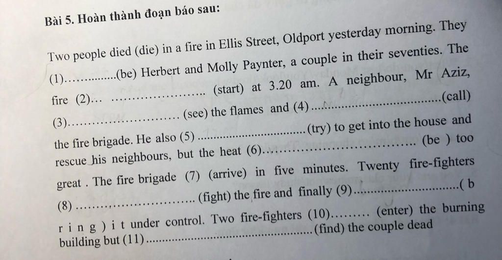 Bài 5. Hoàn thành đoạn báo sau:
