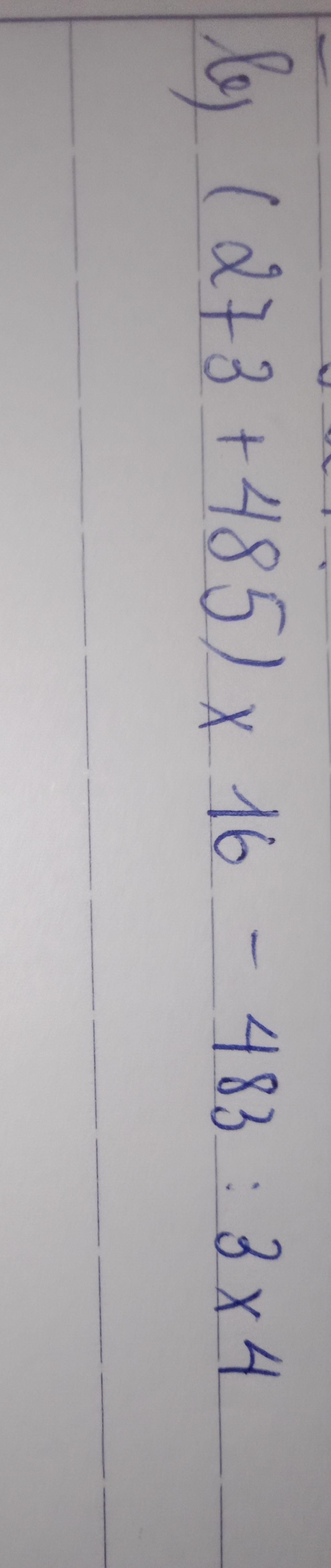$\text{b, ( 273 + 485 )x 16 - 483 : 3 x 4}$