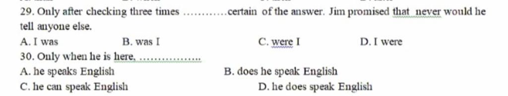 Only when + S + V (chia) + trợ động từ + S + V (nguyên thể)