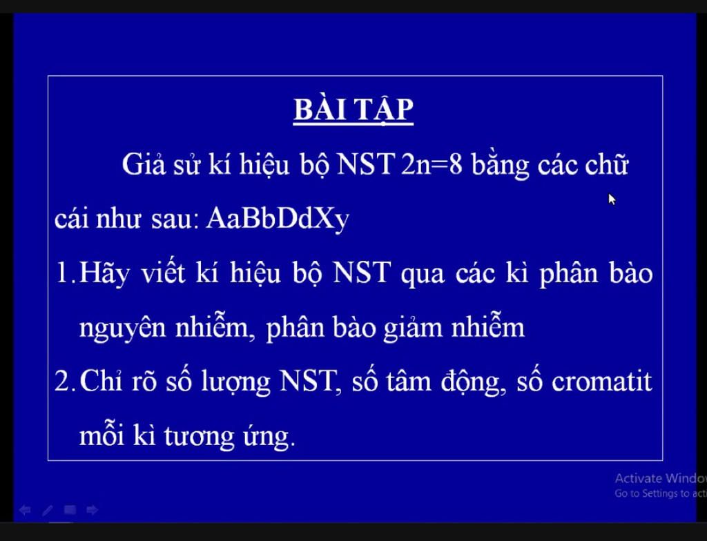 - Kì sau 2: $8$ NST đơn, $8$ tâm động,$ 0$ cromatid