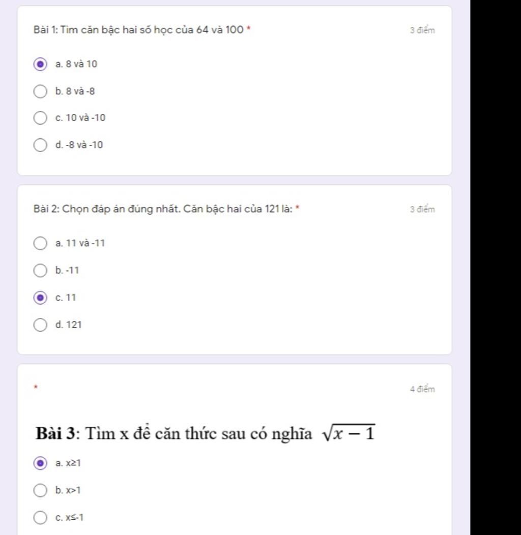 Bài 2: Chọn đáp án đúng nhất. Căn bậc hai của 121 là: *