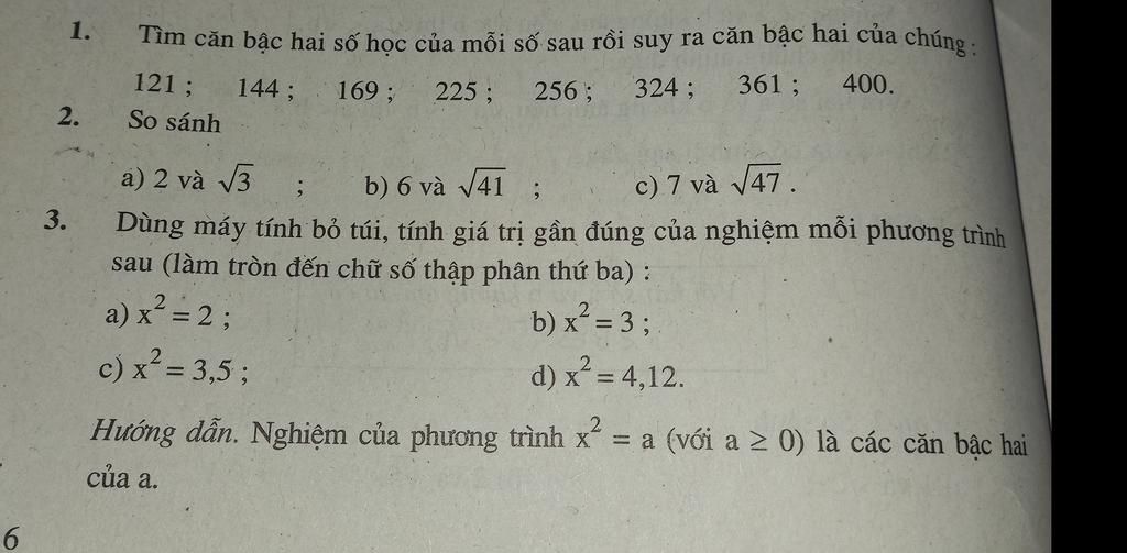 Bài 1: Tìm căn bậc hai số học