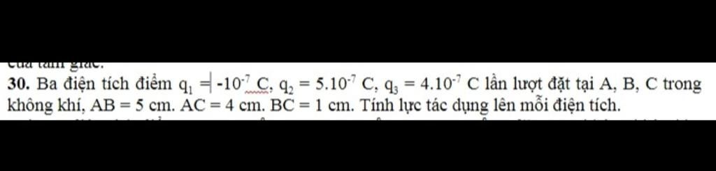 $F_{13}=F_{31}=k.\dfrac{|q_1.q_3|}{AC^2}=9.10^9.\dfrac{|-10^{-7}.4.10^{-7}|}{0,04^2}=0,225N$