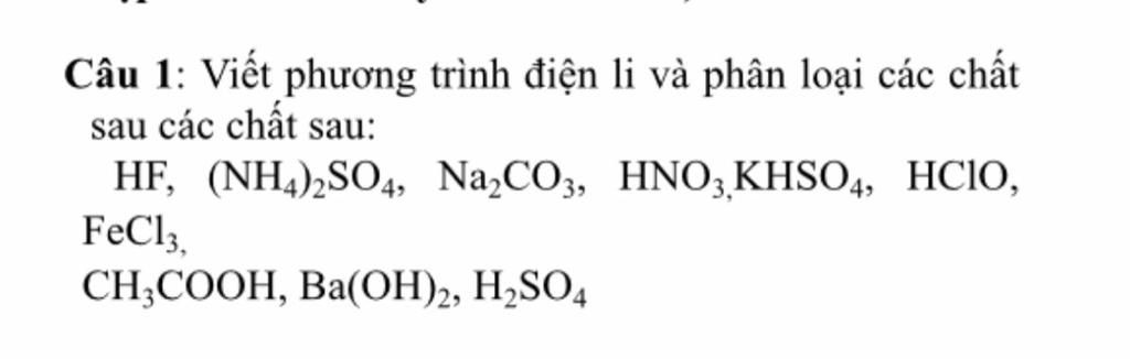 1/ HF $\rightarrow$ H(+)+F(-)