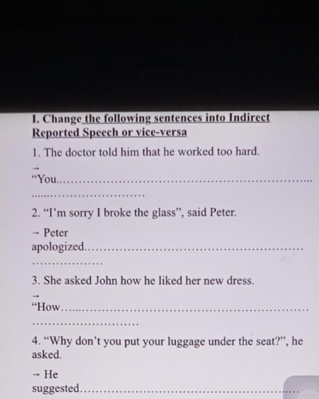 `4. ` He asked, "Why don’t you put your luggage under the seat?".