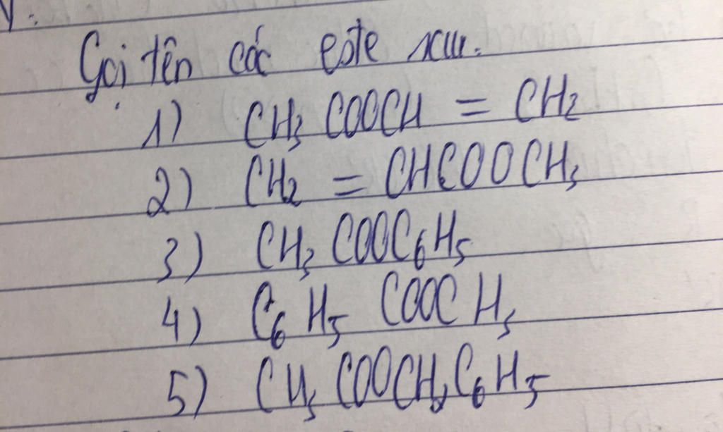 Tên este $=$ tên gốc rượu ("yl) $+$ tên gốc axit ("at")