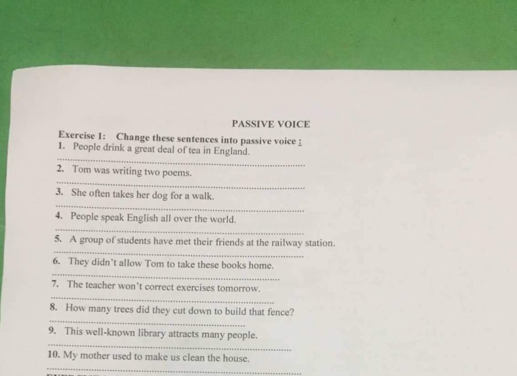 7. Exercises won't be corrected by the teacher tomorrow.