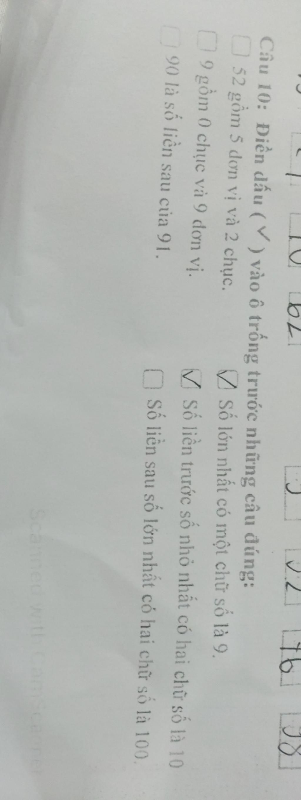 CÂU SAI TRONG BÀI LÀ : - 52 gồm 5 đơn vị và 2 chục