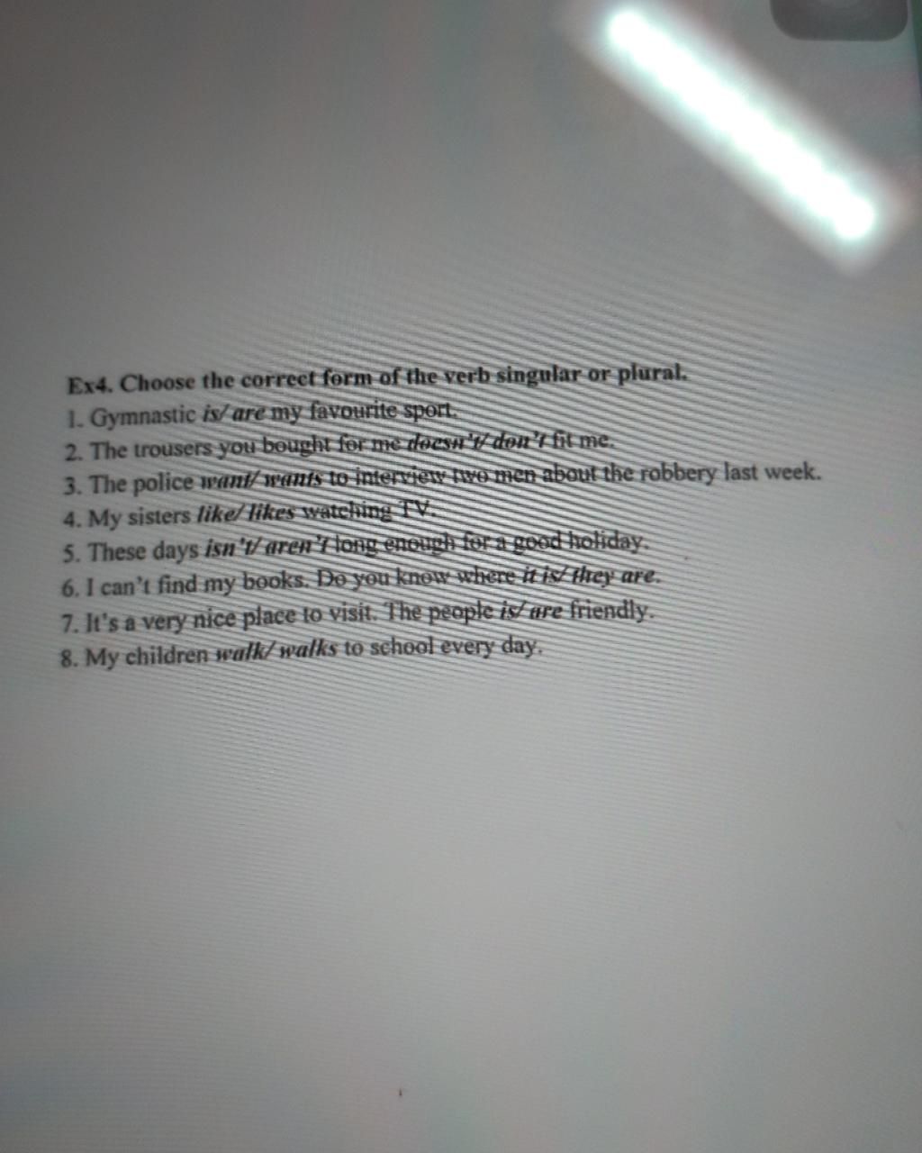 8. walk ( như people children cũng là số nhiều dù ko có s )