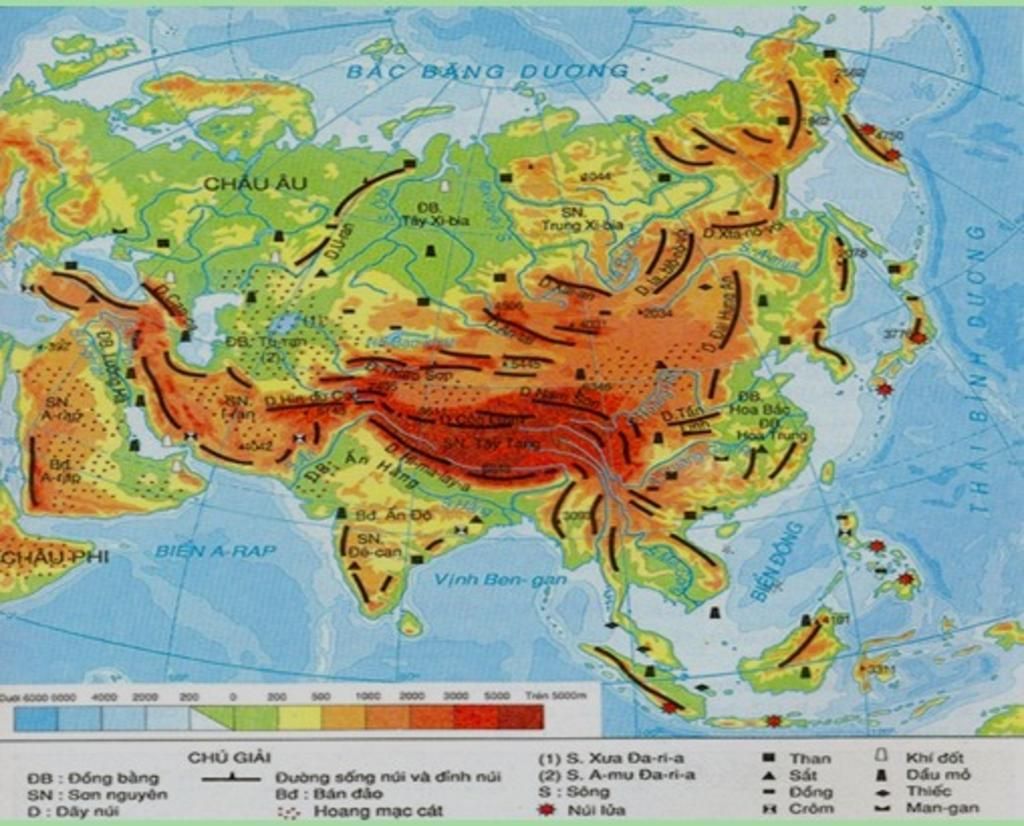 - Các dãy núi cao: Hi-ma-lay-a, Thiên Sơn, An-tai....