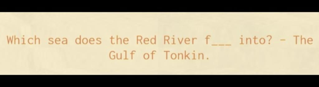 *Dịch nghĩa: Sông Hồng chảy vào biển nào? - Vịnh Bắc Bộ.