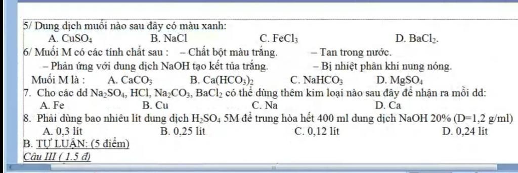 5/ Dung dịch muối nào sau đây có màu xanh:
