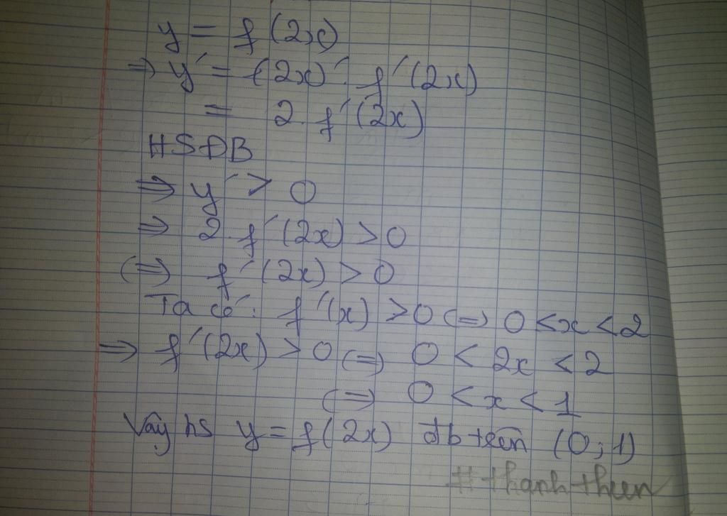 Vậy hàm số `y=f(2x)` luôn đồng biến trên khoảng `(0;1)`