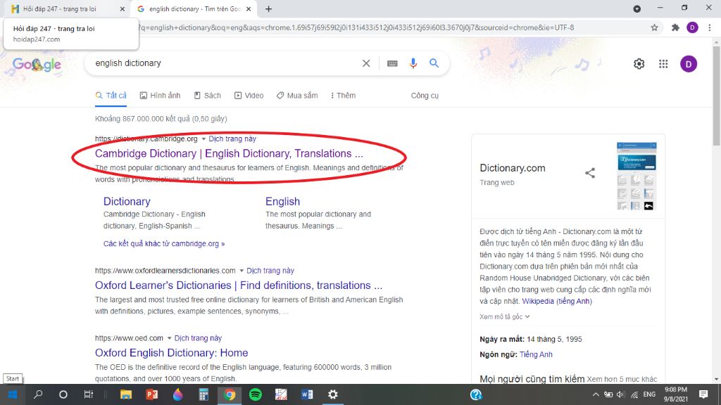 Bước 2 : gõ vào đó từ cần nghe (như hình 2)