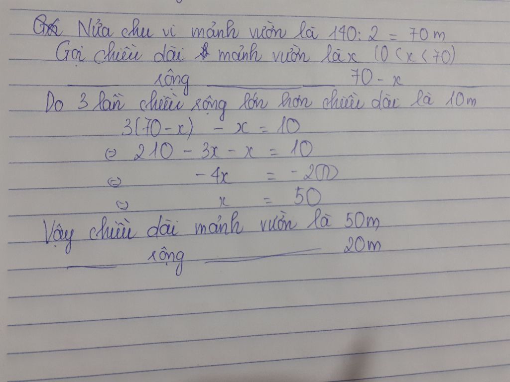 Vì chu vi là 140m nên ta có phương trình: