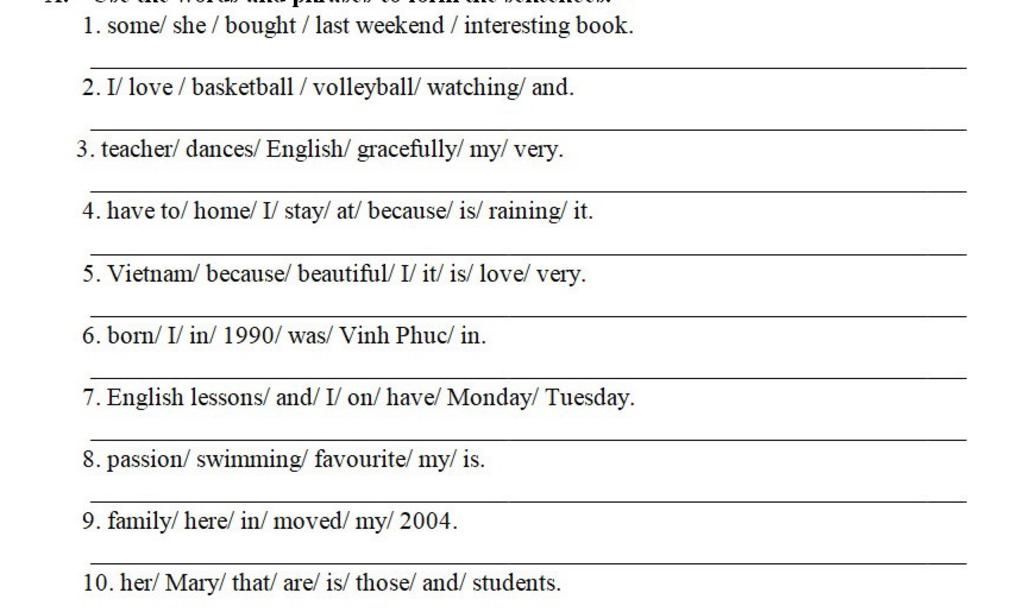 $\text{5.}$ I love Vietnam because it is very beautiful.