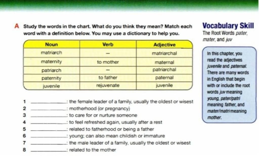 A Study the words in the chart. What do you think they mean? Match each