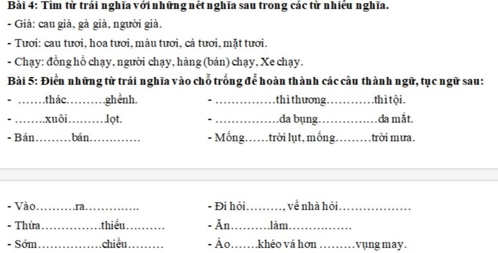 - Từ trái nghĩa vs từ già là : cau non;người trẻ;gà con