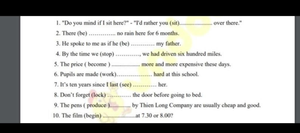4. stopped ( By the time + S1 + V1 (quá khứ đơn), S2 + V2 (quá khứ hoàn thành).
