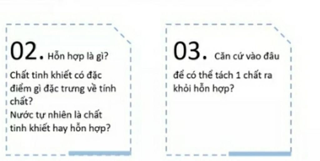 `-` Chất tinh khiết có đặc điểm là chỉ gồm một chất duy nhất, có tính chất xác định và không thay đổi.