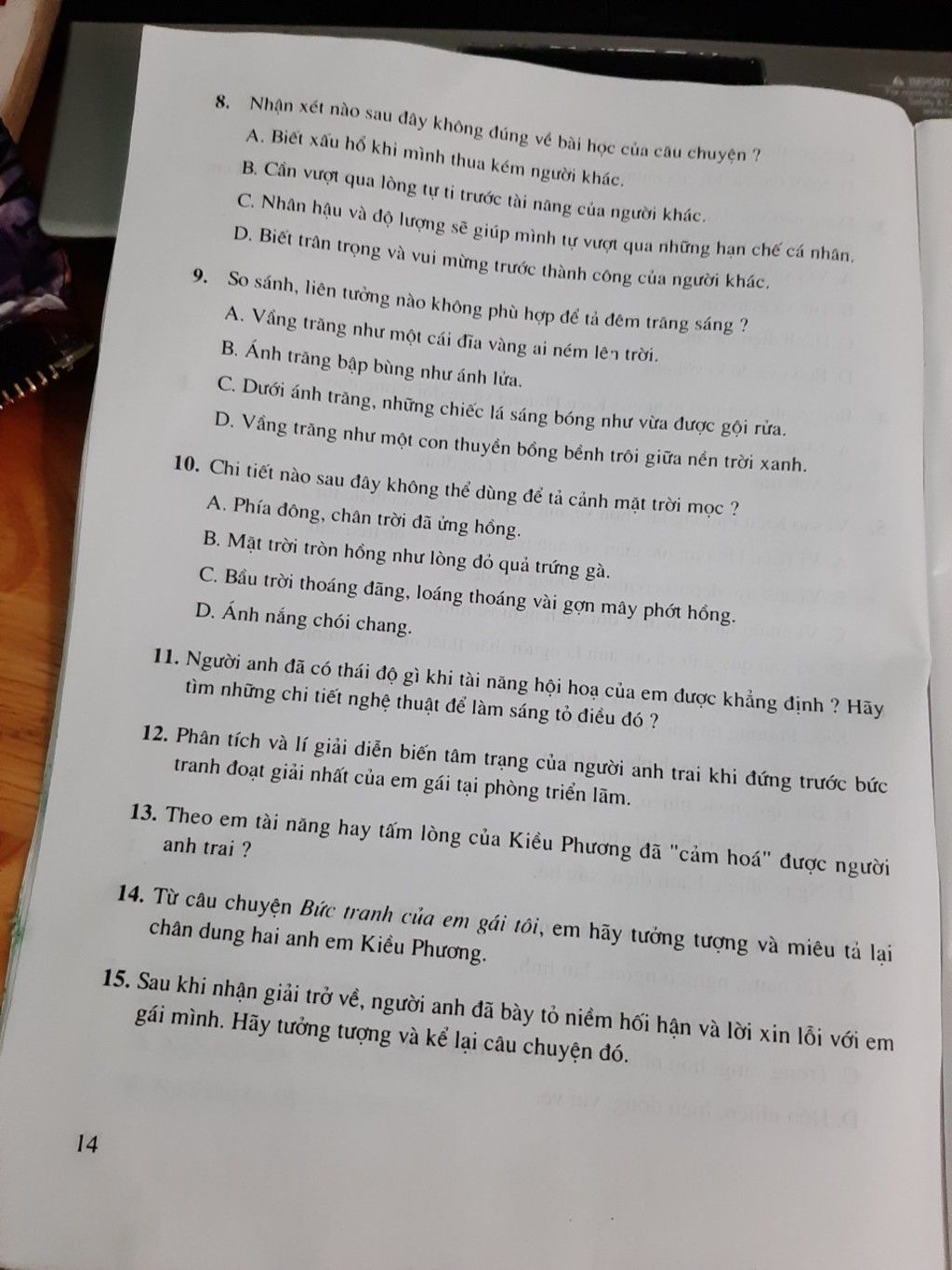 - sau đó người anh xấu hổ vì lâu nay mình đã đối xử không tốt với em, không ngờ dưới mắt em, mình hoàn hảo đến thế mà dưới mắt mình thì khinh thường em, sau khi biết đc tài năng của em thì ghen lòng đố kị.
