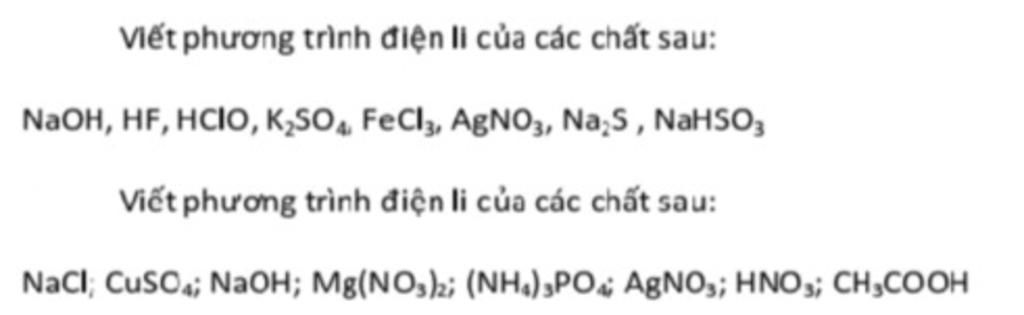 NaOH, HF, HCIO, K;SO, FeCl, AgNO3, Na,S , NaHSO,