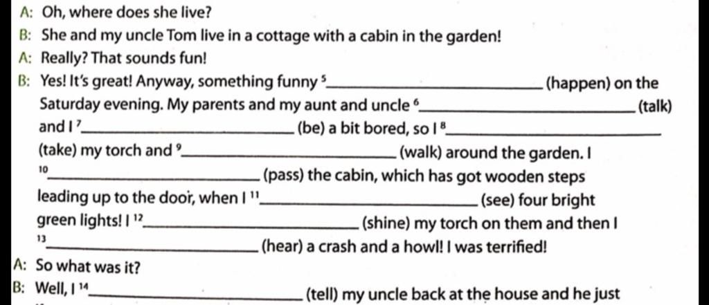 B: She and my uncle Tom live in a cottage with a cabin in the garden!