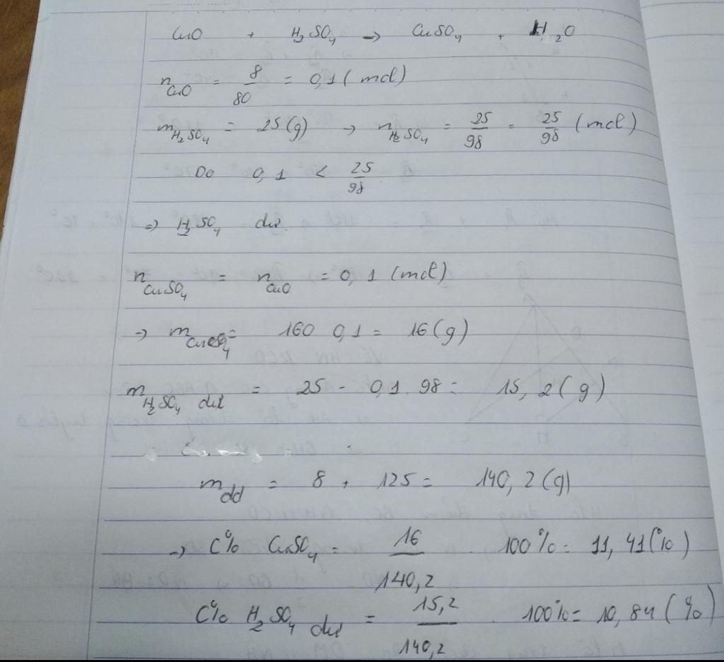 `=>` Sau phản ứng thu được `H_2SO_4` dư và `CuSO_4`