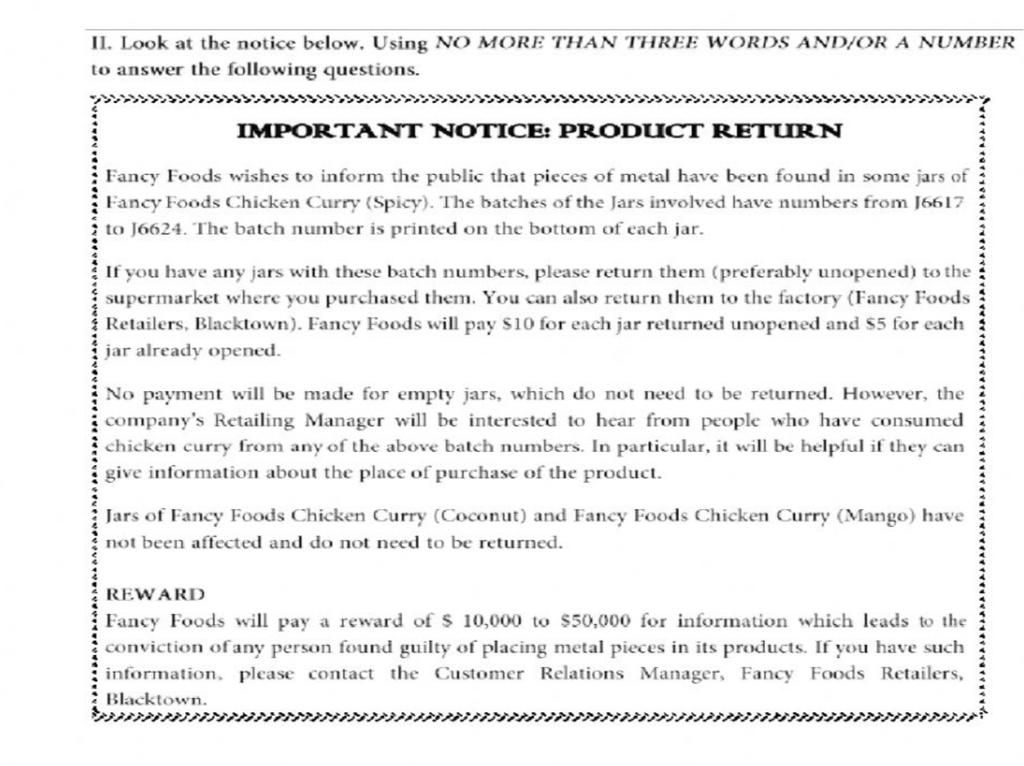 $17.$ If you have eaten Chicken Curry from a jar with one of the batch numbers listed, you should contact the Retailing Manager.