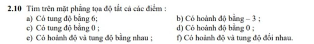 2.10 Tìm trên mặt phẳng tọa độ tất cả các điểm :