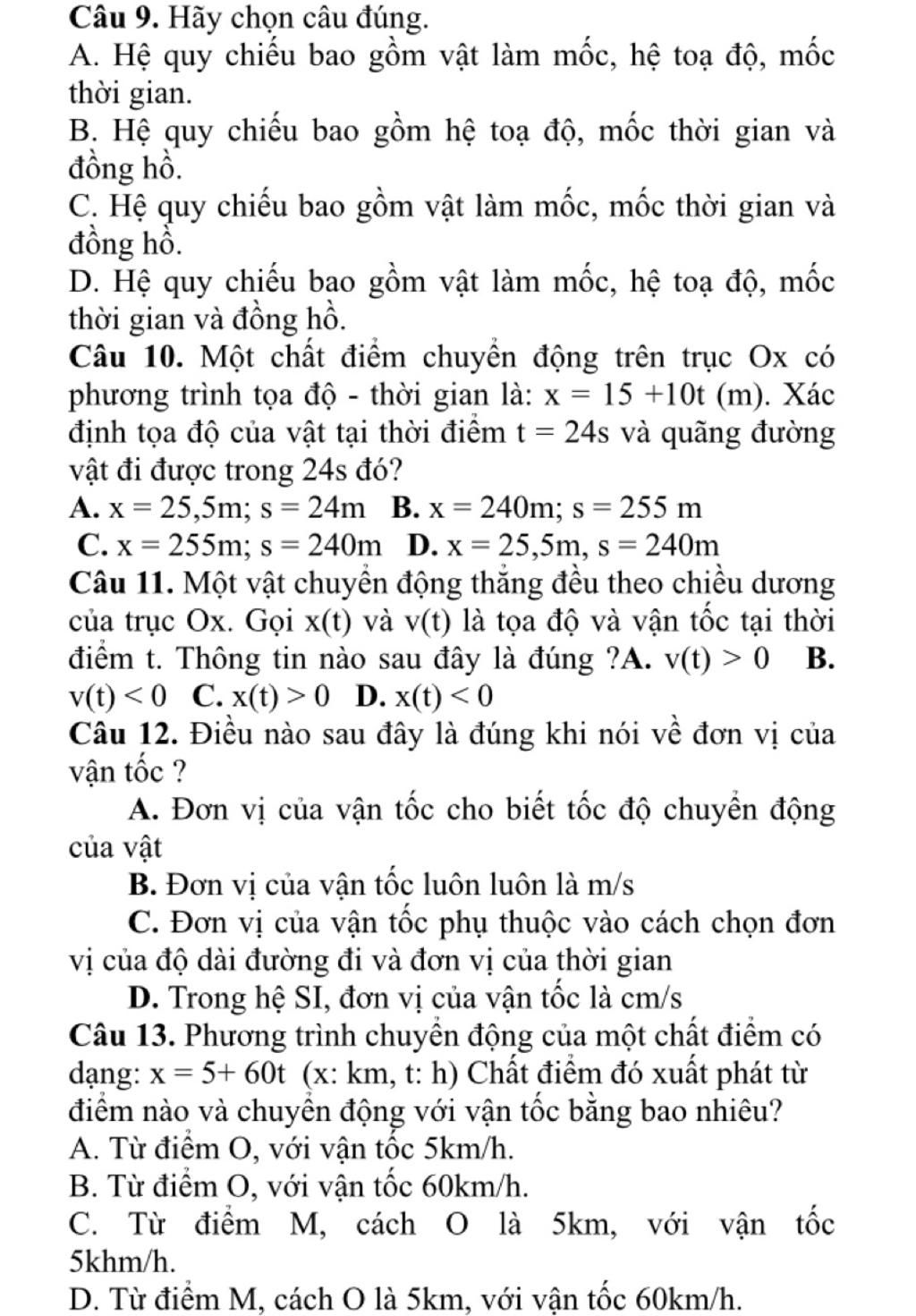 Chất điểm xuất phát từ điểm M cách O là 5km, với vận tốc 60km/h