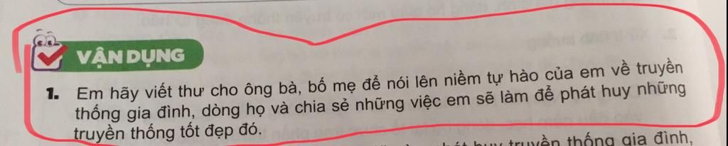 Đề bài: Con hãy viết thư cho ông bà,cha mẹ trong gia đình để nói lên niềm tự hào của con về truyền thống gia đình, dòng họ.