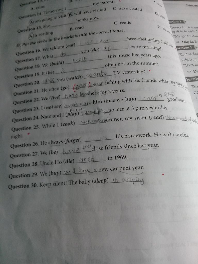 Always còn được dùng trong hiện tại tiếp diễn nữa nhé (đây là cách dùng đặc biệt).Dùng always diễn tả 1 thói quen gây phiền phức thể hiện sự bực bội ; phàn nàn ; khó chịu của người nói.