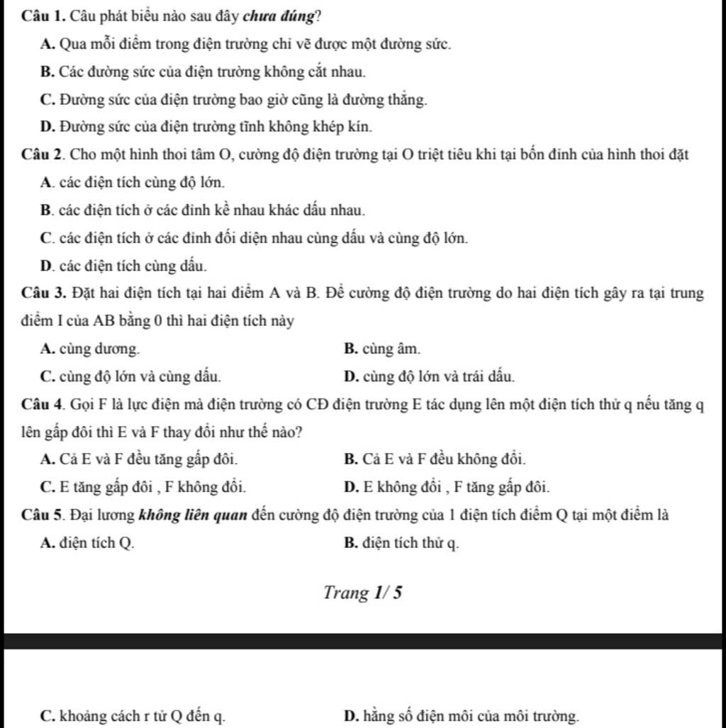 Câu C sai vì: Đường sức của điện trường là đường cong không kín.