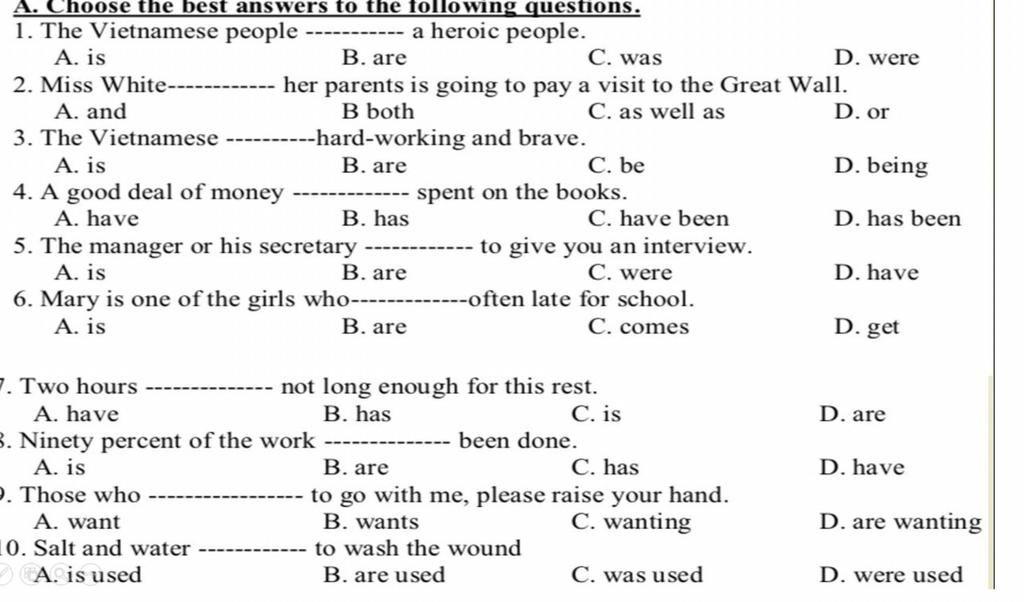 Dùng theo chủ ngữ thứ 2 nếu có chữ or trong câu