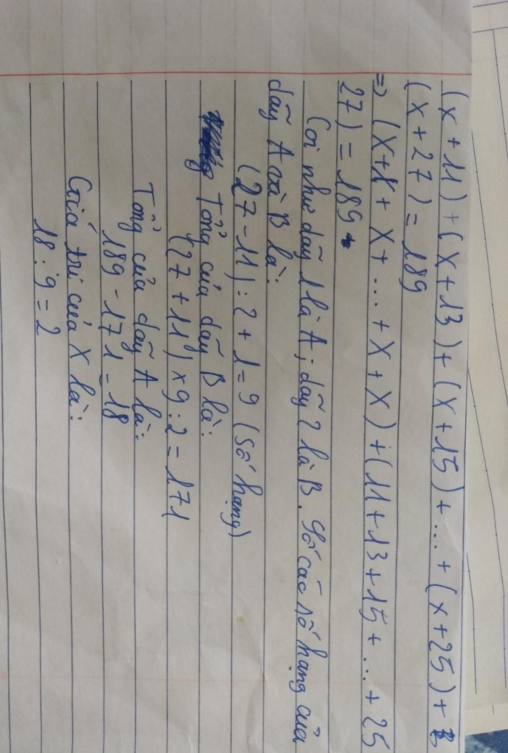 $\text{(27 - 11) : 2 + 1 = 9 (số hạng)}$