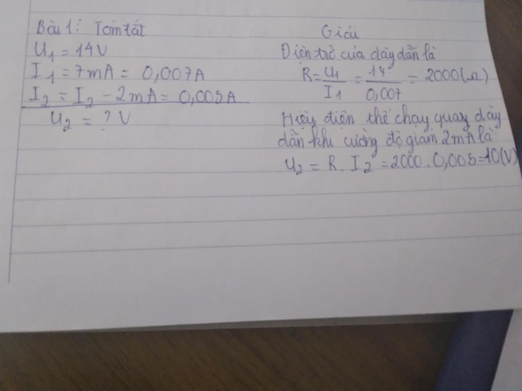 \(\dfrac{{{U_1}}}{{{U_2}}} = \dfrac{{{I_1}}}{{{I_2}}} \Rightarrow \dfrac{{14}}{{{U_2}}} = \dfrac{7}{7-2} \Rightarrow {U_2} = 10V\)