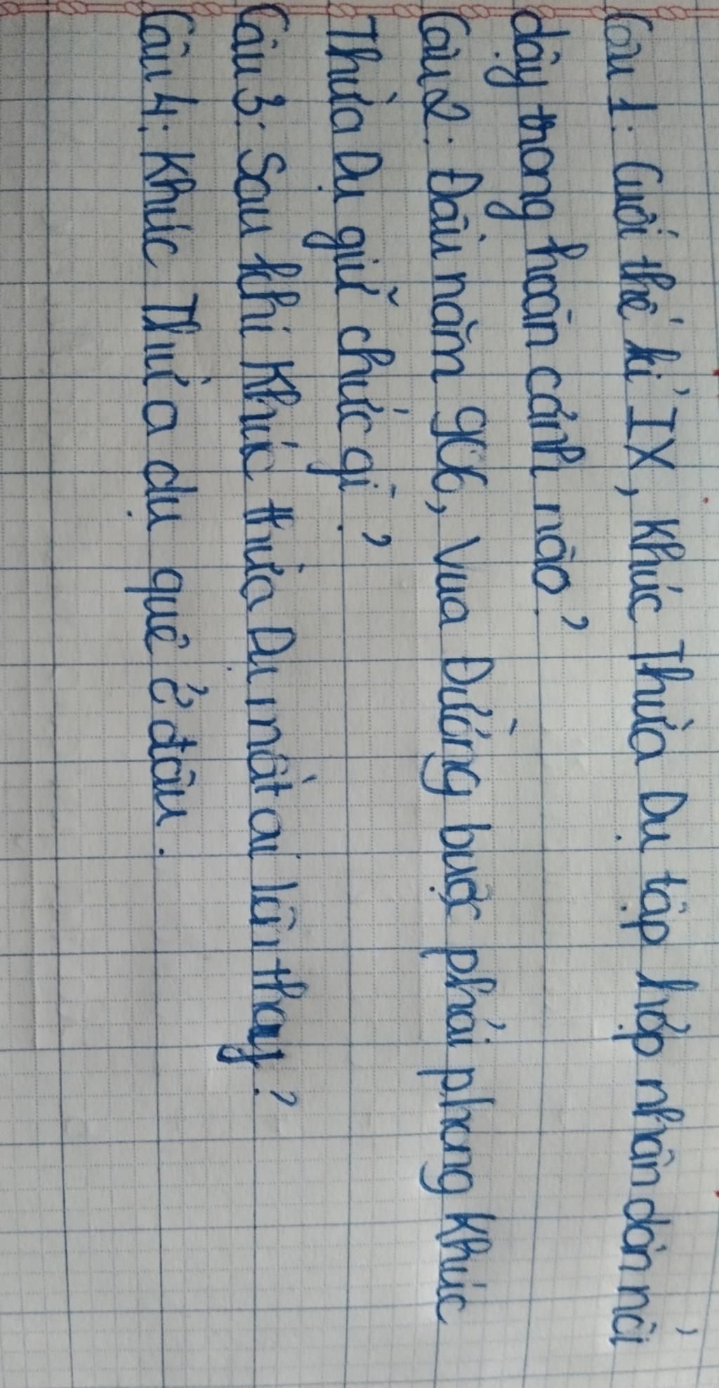 Câu 1: Cuối thế kỉ XIX, Khúc Thừa Dụ tập hợp nhân dân nổi dậy trong hoàn cảnh nhiều cuộc khởi nghĩa của nhân dân đã bùng nổ, nhà đường dần dần suy yếu
