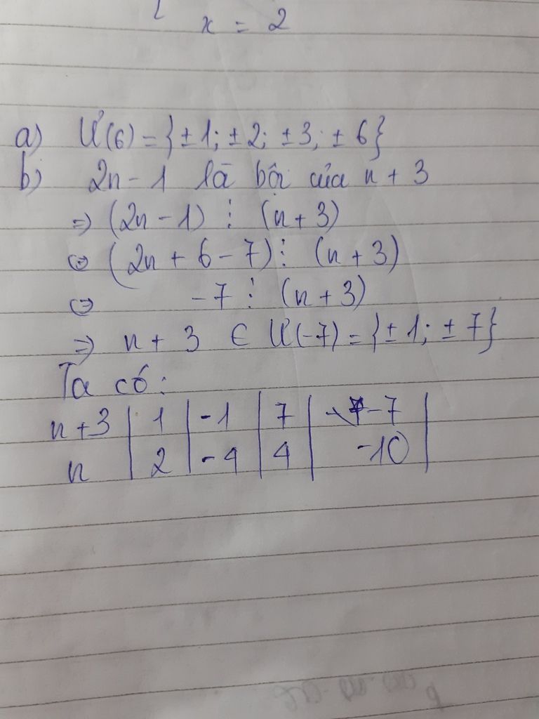 $⇒n+3 ∈ Ư(-7)={-7;-1;1;7}$