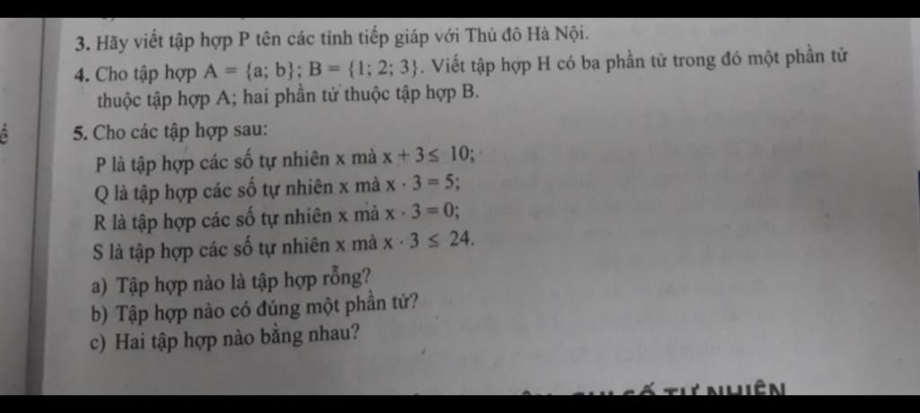 a,Tập hợp Q là tập hợp rỗng vì không có số tự nhiền nào nhân với 3 = 5