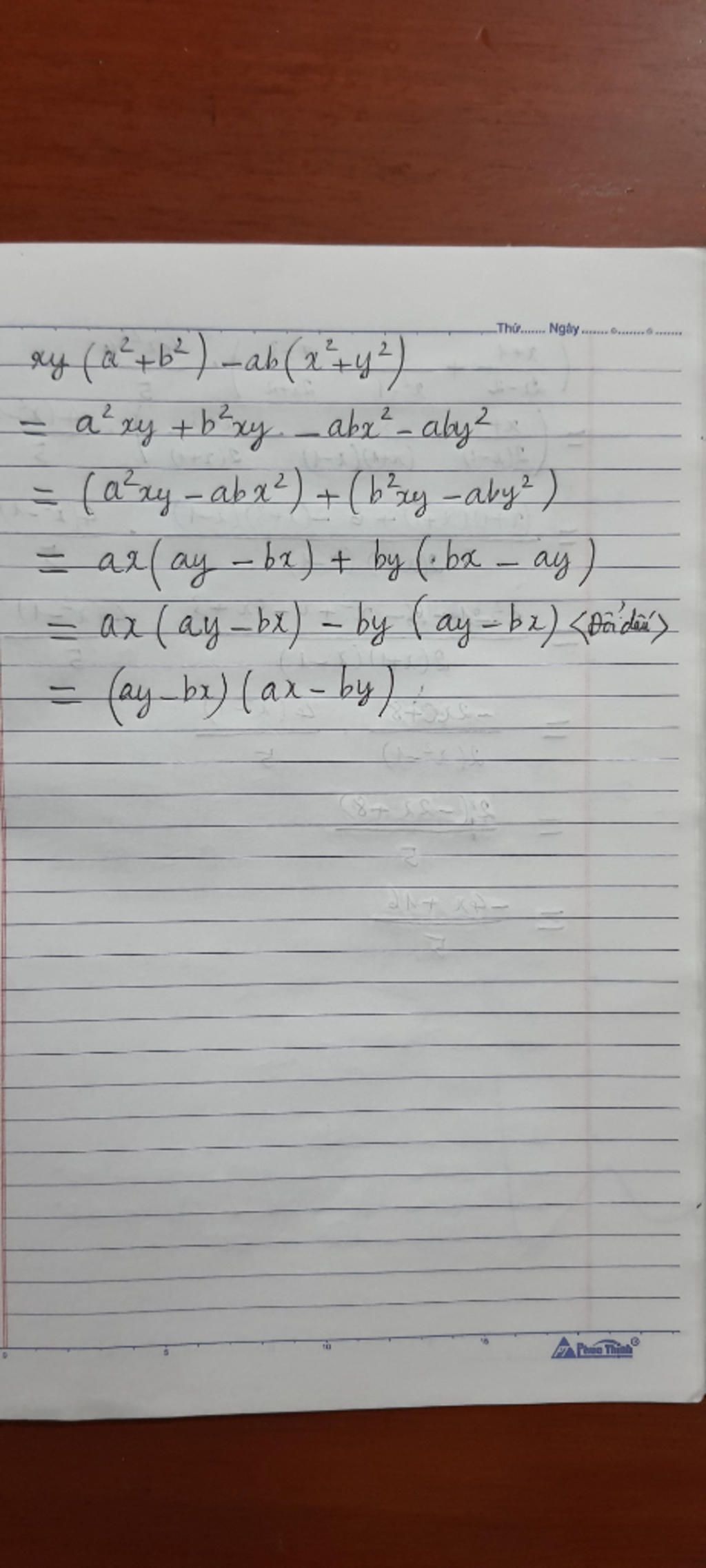 `= (a^2xy-abx^2)+(b^2xy-aby^2)`