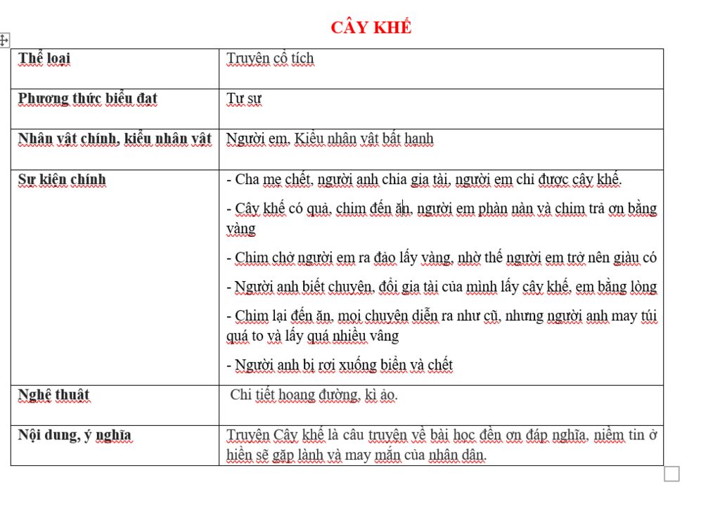 Sự kiện chính: Người em có một cây khế để sinh sống.