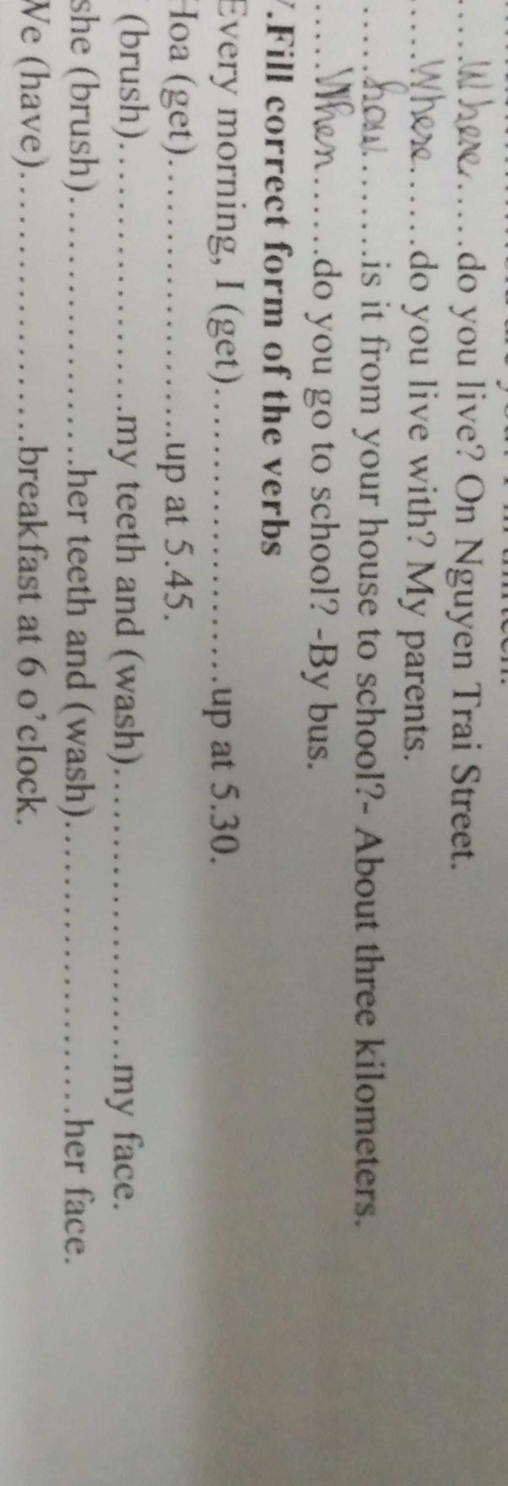 -> Vì sau I là V_o nên brush -> brush, wash -> wash.